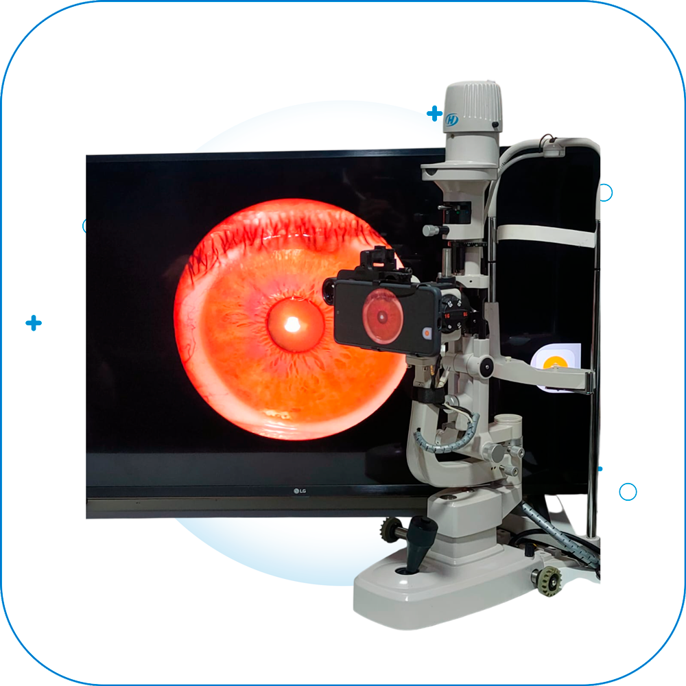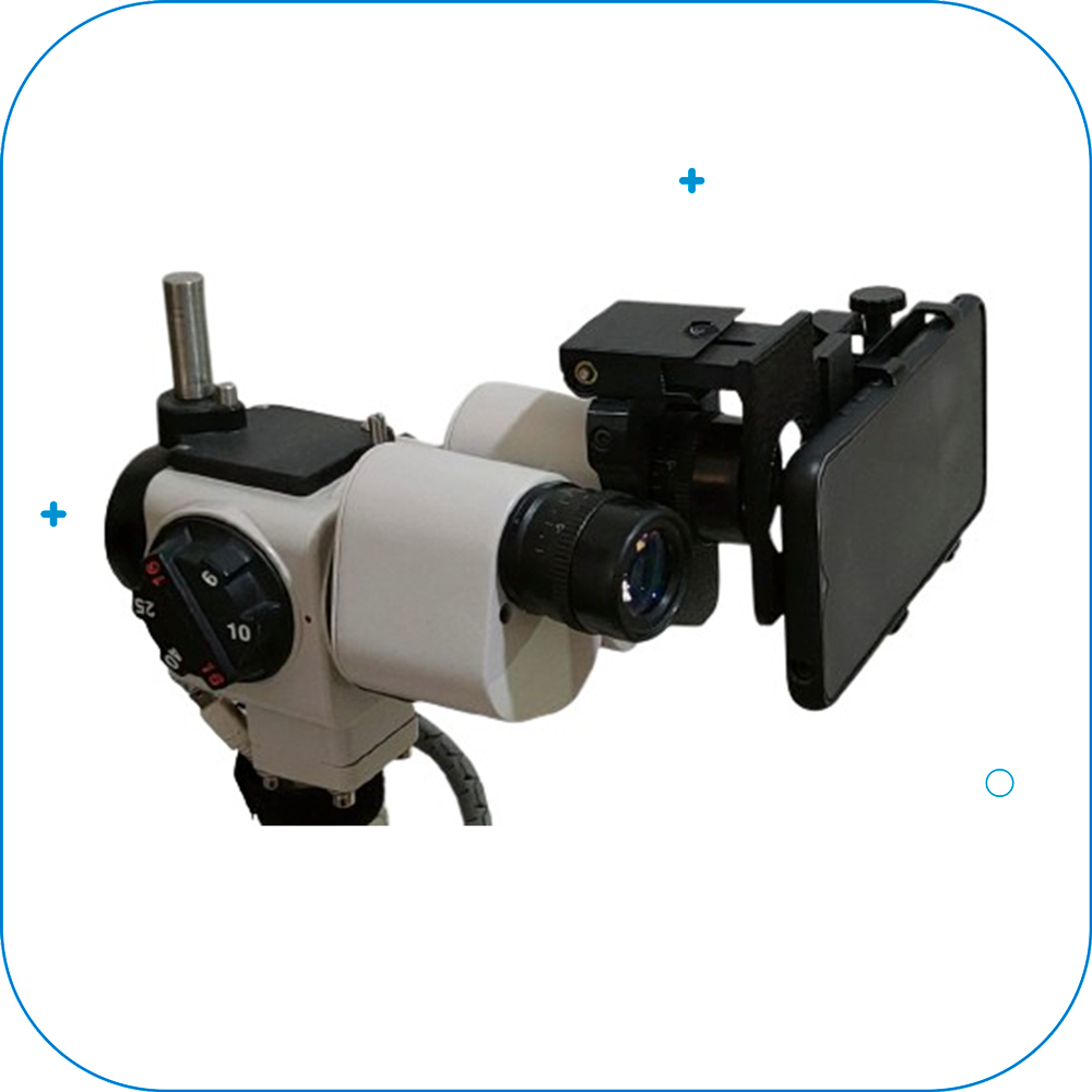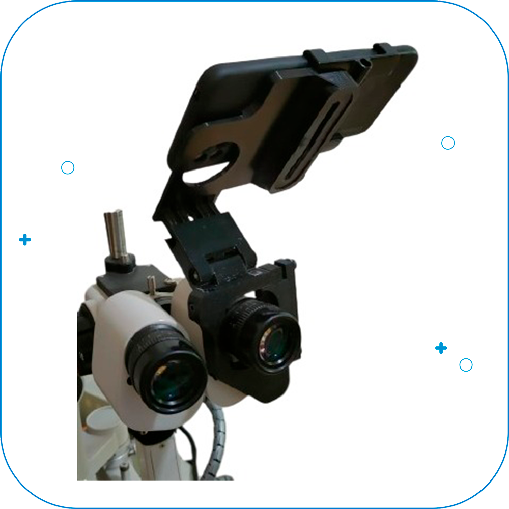 Adaptador para binocular de microscopio y/o lampara de hendidura, el cual permite a través de un teléfono móvil poder grabar imágenes y video.
